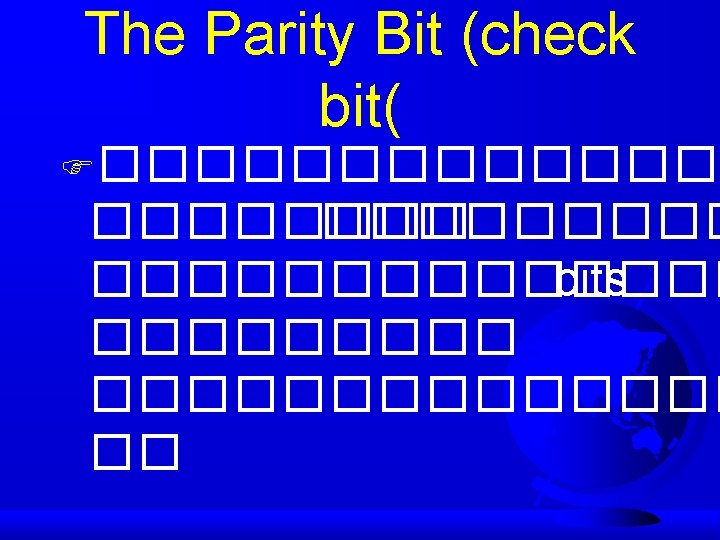 The Parity Bit (check bit( �������������� F ������ : oddpartiy system, even-parity system F