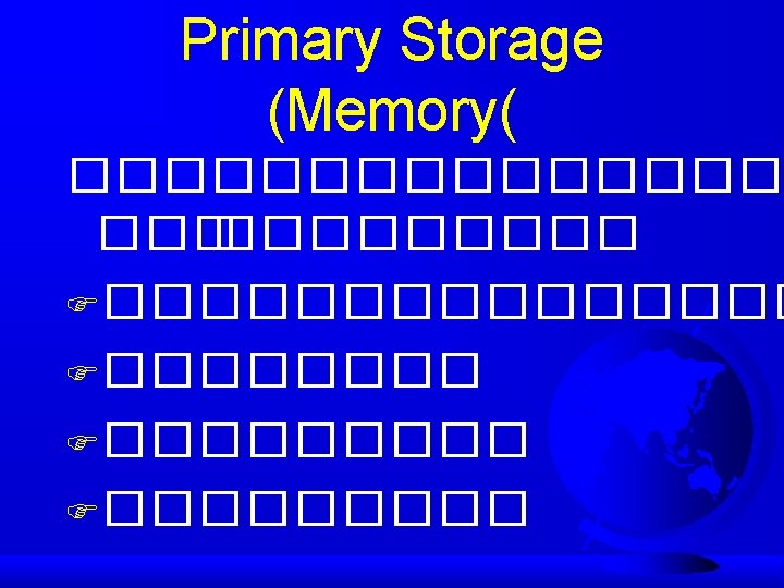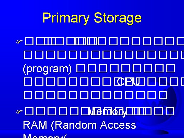 1000 101 1111 000 PRIMARY STORAGE 1001 001 0001 1000 101 001 0001 100 0011 001 1111 000 1010 0001 0001 000 1111 1001 000 1111 0001 100 CPU SECONDARY STORAGE