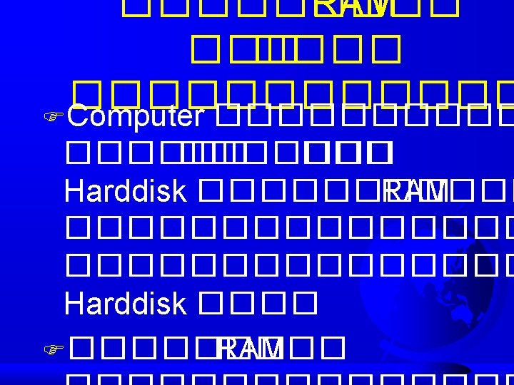 ������ RAM The more RAM in your computer, the more powerful the programs you can run. FThe more RAM in your computer, the more speed you can get. F