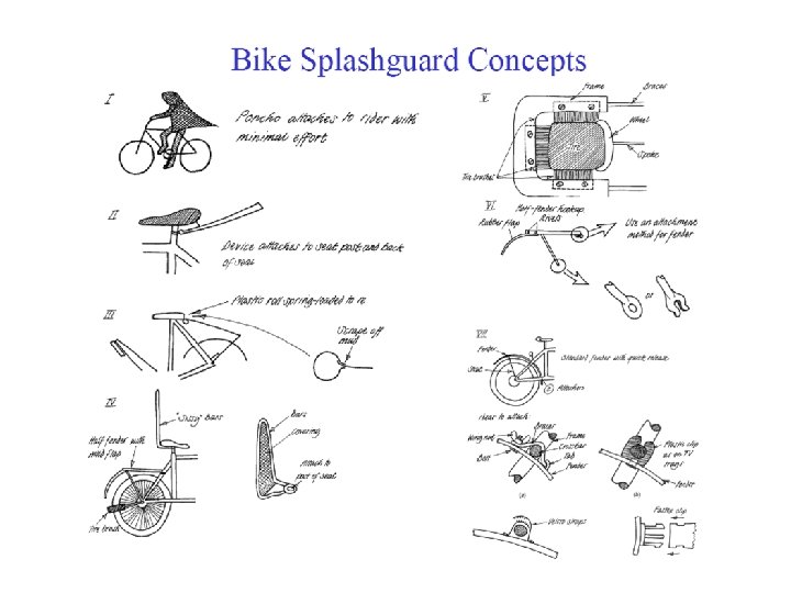 Design Selection –Pugh’s Method • Step 2 –Select the Design Solutions to be Compared The alternative design solutions should be those that proceed from the brainstorming. • Step 3 –Generate the Score A favorite design solution should be selected as a datum. All other designs are compared to it relative to each customer needs. For each comparison, the concept being evaluated is judged to be either better than (“+” score), about the same (“s” score), or worse than the datum (“-” score). Numeric scores can also be used.
