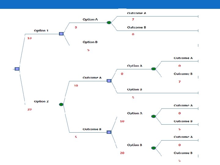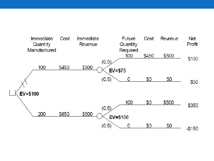 EV = (0. 50*17) + (0. 50*10) = 13. 5 Red = Value Green = Probability Orange = Payoff
