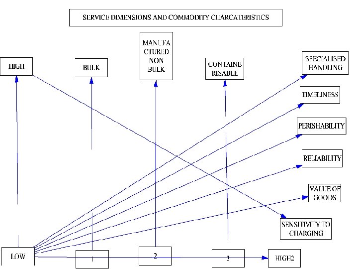 Commodity Characteristics Characteristic Bulk Non bulk Containerisable Primary Parcel size high Medium to low Propensity to damage during handling Sensitivity to positioning on time low high low Medium to low high Intrinsic value low Medium to high Need for specialized handling low medium high Perishability low medium high Value of goods low high Need for add on services low medium high Reliability and flexibility Low to medium Medium to high Derivatives