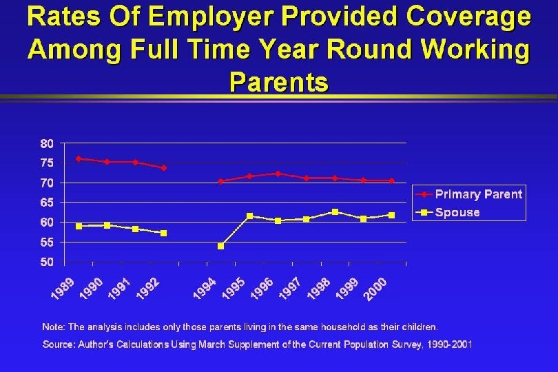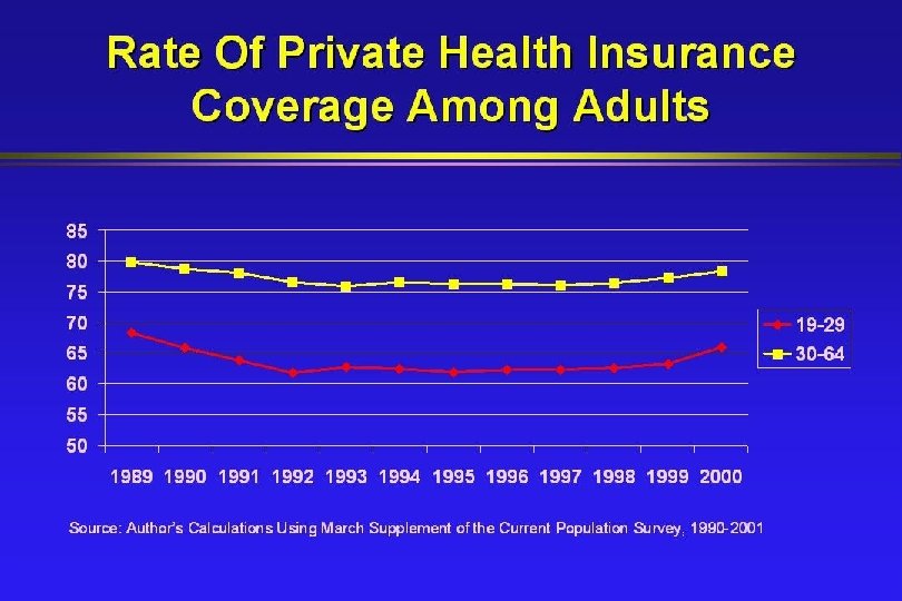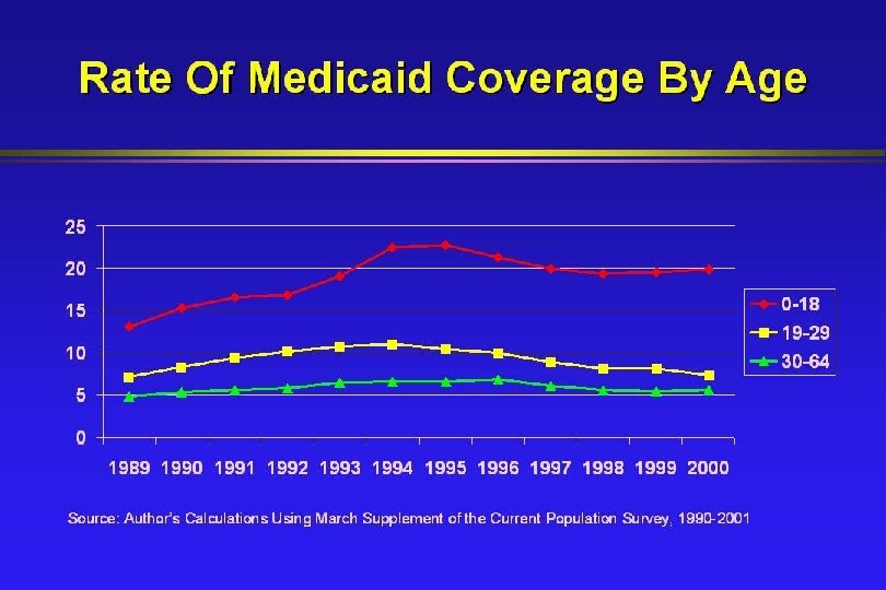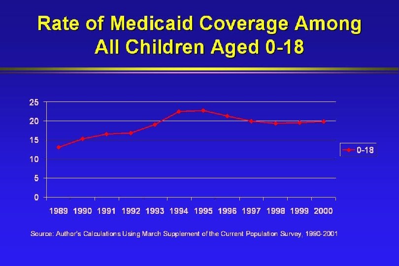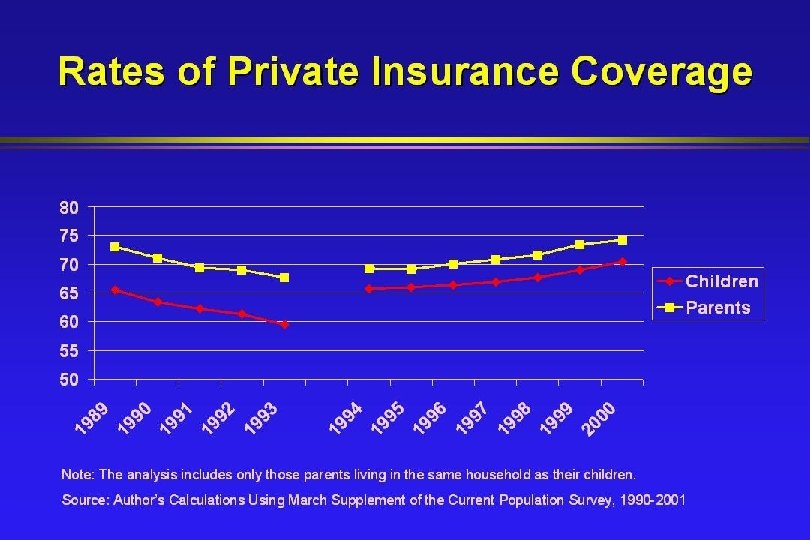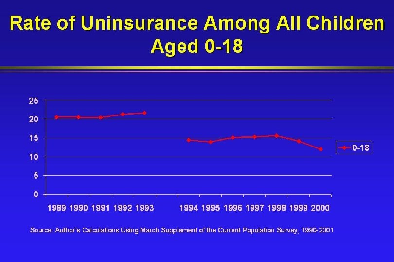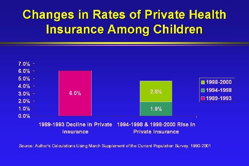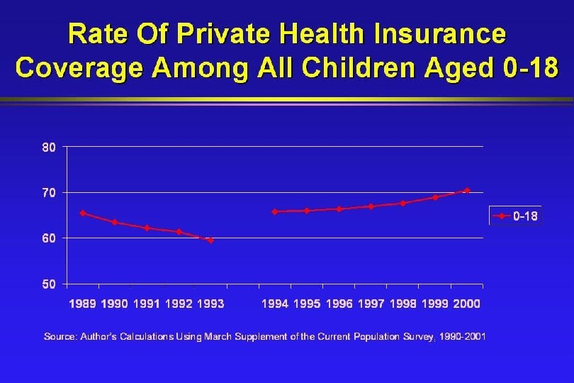 Rates of Private Insurance All Among Children Aged 0 -18 Source: Author’s Calculations Using March Supplement of the Current Population Survey, 1990 -2001