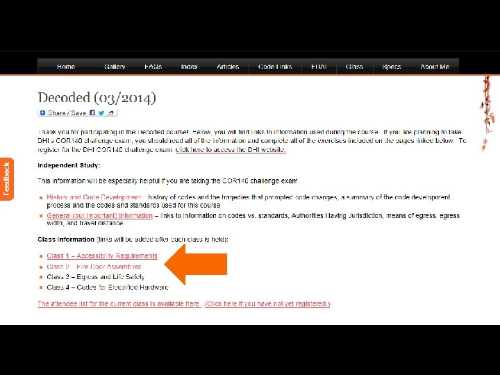 Homework • Find at least one non-compliant egress door. • Photograph the issue and find the applicable paragraph in the 2009 IBC and 2009 NFPA 101 (ie. the paragraph that requires one motion to unlatch, or panic hardware, etc. ). • Email photos and documentation to lori. greene@allegion. com. 107 | Decoded 3 – Egress and Life Safety