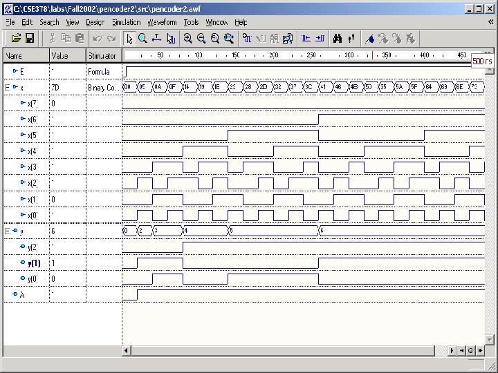 8 -to-3 Priority Encoder entity pencoder is port ( x: in STD_LOGIC_VECTOR (7 downto 0); E: in STD_LOGIC; y: out STD_LOGIC_VECTOR (2 downto 0); A: out STD_LOGIC ); end pencoder;
