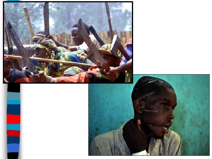 Among the worst examples of violence in Africa is the genocide (mass killings) in Rwanda and Sudan Link to video on Rwandan genocide (3. 00)