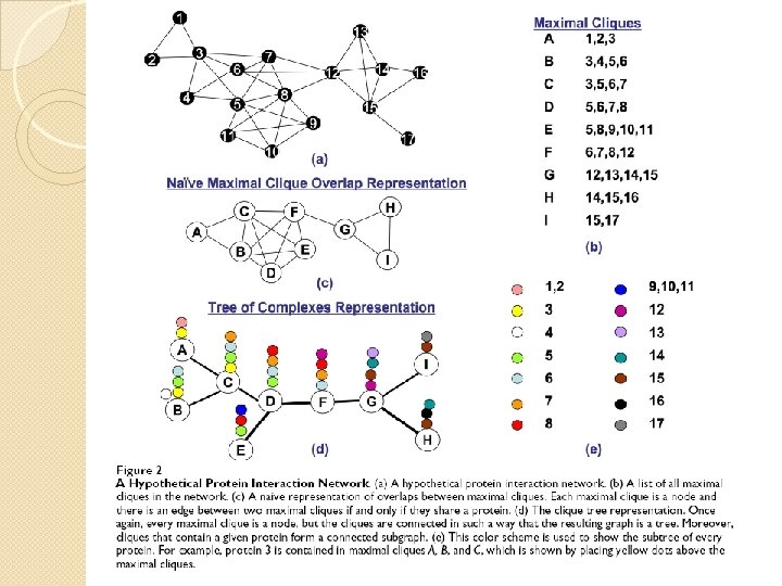 Naïve representation VS Tree of Complexes Representation �Which protein in which complex interacts with each other? �Dynamics of the interactions �How to identify functional groups? �A set of maximum cliques containing a node are connected? �Size of overlap