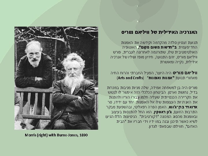 https: //en. wikipedia. org/wiki/William_Morris ויליאם_מוריס https: //he. wikipedia. org/wiki/ https: //www. wmgallery. org. uk/collection/themes/william-morris/ https: //www. wmgallery. org. uk/collection/browse-the-collection/object-type/books-and-archive https: //www. haaretz. co. il/1. 2614033 https: //www. haaretz. co. il/gallery/architecture/environment/. premium-1. 2581243 https: //www. haaretz. co. il/gallery/1. 1108047 https: //www. wmgallery. org. uk/visit/gallery-displays https: //www. handerella. com/a-note-by-william-morris-on-his-aims-in-founding-the. html https: //en. wikipedia. org/wiki/Edward_Burne-Jones קלריטה ואפרים : הנכם מוזמנים להיכנס לאתר שלנו www. clarita-efraim. com. נשמח לתגובות