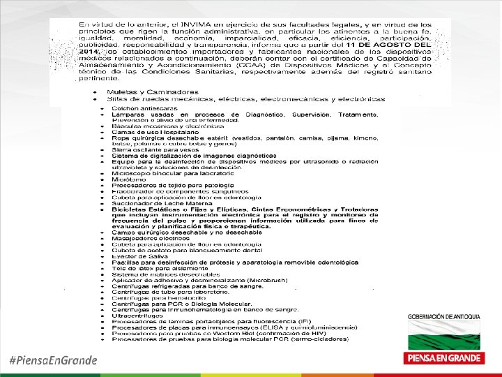 CIRCULAR EXTERNA No 500 -8060 -13 5 de Diciembre de 2013 DEL INVIMA Asunto: Adecuación de establecimientos importadores y fabricantes nacionales, obtención del registro sanitario , etc. Establece como plazo hasta el 11 de agosto de 2014 para que cuenten con el registro sanitario pertinente para los siguientes dispositivos médicos.