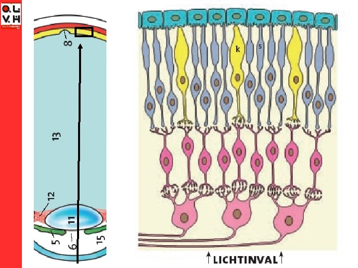 Blinde vlek • Plaats waar de oogzenuw het oog verlaat • Geen zintuigcellen • Plek waar iedereen blind is.