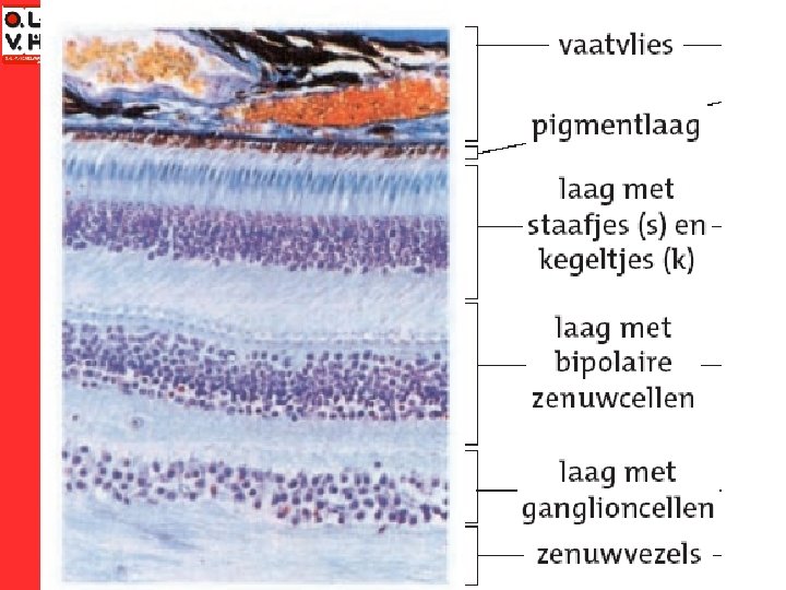 Netvlies en gele vlek Fovea Zenuwcellen Staafjes en kegeltjes Enkel kegeltjes