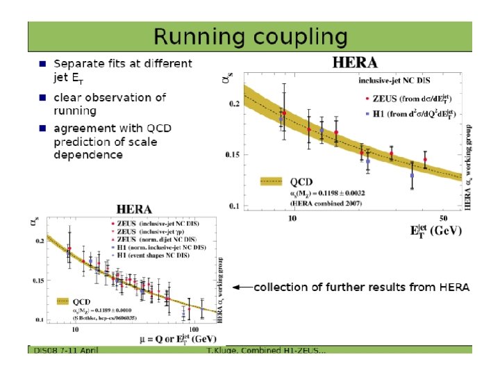 Summary What have we learnt from DIS in the last 30 -35 years? • Verified the basic idea of QPM • Established QCD as theory of the strong interaction • Measurement of essential parameters: Parton Distribution Functions, αs(MZ ) and the running of αs • Low-x physics • QCD beyond DGLAP. . BFKL. . non-linear. . CGC. . dipole models. . diffraction etc • The LHC could discover a different kind of new physics