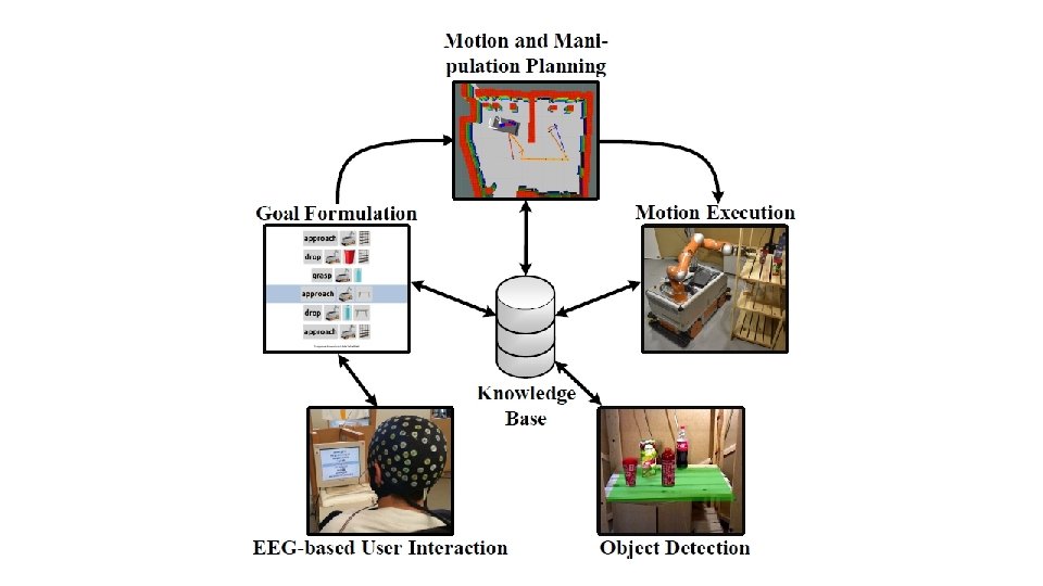 Key Components • BCI – brain control interface • non-invasive neuronal signal recording • co-adaptive deep learning for prediction • Goal Formulation Planning • Domain-independent planning • Adaptive graphical goal formulation interface • Dynamic knowledge base • Robot motion generation • Perception