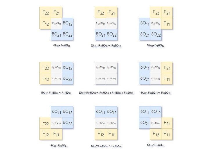 The previous computation can be obtained by a different type of convolution operation known as full convolution. In order to obtain the gradients of the input matrix we need to rotate the filter by 180 degree and calculate the full convolution of the rotated filter by the gradients of the output with respect to error. F 11 F 12 F 21 F 22 Rotate x F 12 F 11 F 22 F 21 Rotate y F 22 F 21 F 12 F 11