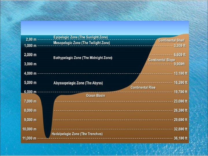 Different Trenches • Peru-Chile Trench- longest ocean trench in the Eastern Pacific Ocean. Maximum depth of 26, 460 feet and 3, 666 miles long • Mariana Trench- the deepest trench known in the western portion of the North Pacific Ocean. 1580 miles long and a Maximum depth of 35, 797 ft