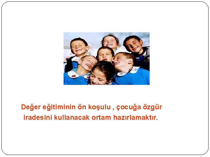 Değer eğitiminin ön koşulu , çocuğa özgür iradesini kullanacak ortam hazırlamaktır.
