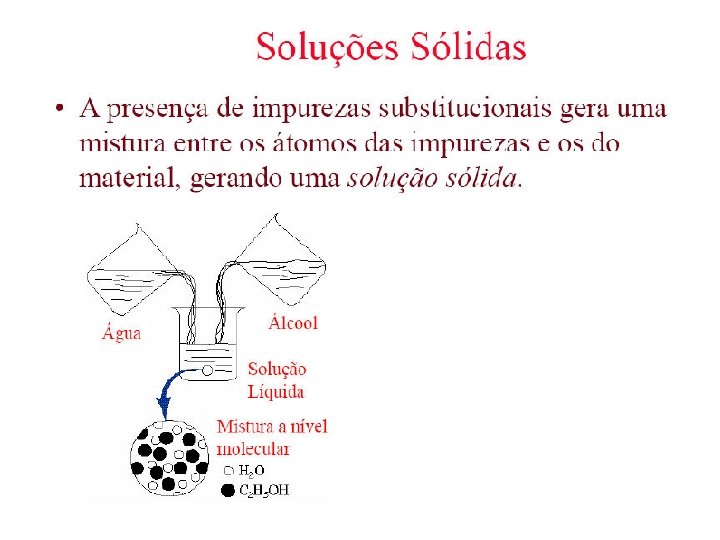 Definições e Conceitos Básicos – Limite de solubilidade: é a concentração máxima de soluto que pode ser dissolvido no solvente para formar uma solução sólida (uma única fase). Temperatura (°C) 10 0 Limite de solubilidade 80 60 L Solução líquida (xarope) 40 L (líquido) + S (açúcar sólido) 20 Água pura 0 20 65 40 60 80 Co = Composição (%p de açúcar) 100 Açucar pura