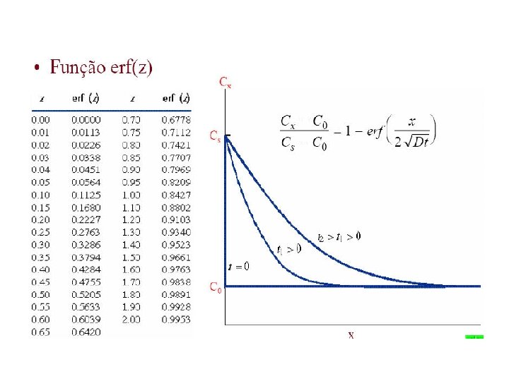 – t = 49. 5 h – Cx = 0. 35 wt% – Co = 0. 20 wt% x = 4 x 10 -3 m Cs = 1. 0 wt% erf(z) = 0. 8125