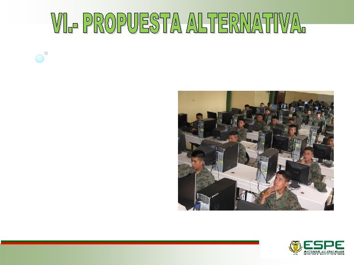 JUSTIFICACIÓN Importancia Interés Misión Beneficiarios • LA ESPE es más alto organismo para la preparación de los oficiales en la educación superior • Determinar el real impacto de la carrera de la Licenciatura en Ciencias Militares en las nuevas generaciones de oficiales • Ayuda a lograr un proceso de cambio enfocado a mejorar el la calidad educativa, para contar con profesionales militares con competencias para desempeñarse en todos los ámbitos. • Universidad de la FF. AA ESPE • Cadetes • FF. AA