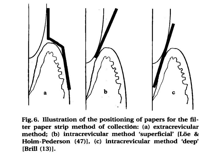 Method of collection n SAMPLING OF CREVICULAR FLUID BY MEANS OF ABSORBING PAPER STRIPS n TWISTED THREADS n SAMPLING OF GCF BY MEANS OF MICROPIPETTES n GINGIVAL WASHINGS