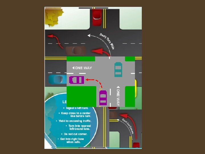 TURNING • DRIVER SIGNALS • RIGHT TURNS • LEFT TURNS
