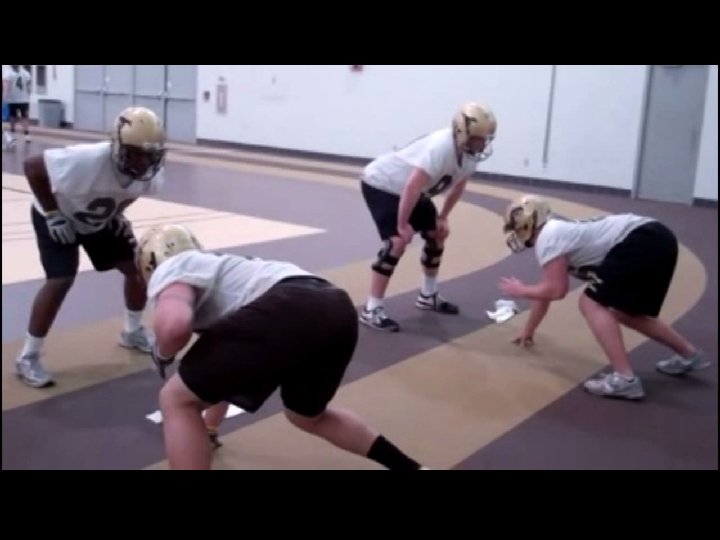 Great Stance Purpose - Teaching fundamental movements of stance and footwork in regards to first movement off the football. ü Feet Underneath Body ü Toe to Instep Stagger ü Screw Upfoot Into Ground ü Elbows On Knees Position ü Stretch inside hand (Inside hand down) ü Tripod on Fingertips ü Butt slightly over shoulders ü Even weight distribution ü Off hand up and ready to strike