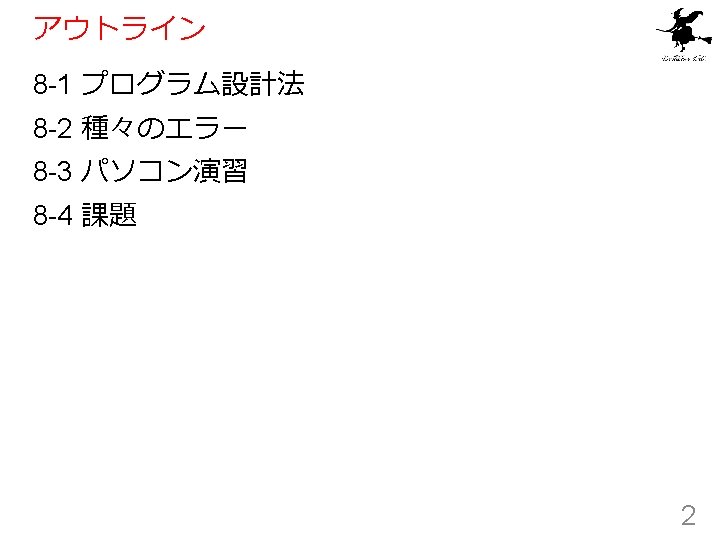 Purpose • プログラムの振る舞いに関する仕様の明確化 • プログラムの仕様,目的など to compute the area of a ring whose radius is outer and whose hole has a radius of inner プログラムが何をするか, 何を計算するかを書いた文章 プログラム化すると ; ; area-of-ring : number -> number ; ; to compute the area of a ring whose radius is ; ; outer and whose hole has a radius of inner (define (area-of-ring outer inner). . . ) 10