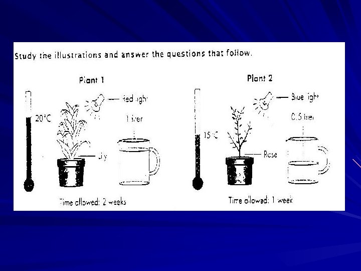Controlled Experiments Run 2 experiments set up in the same way. Intro a variable to one experiment. Can be any factor – light, water, etc.