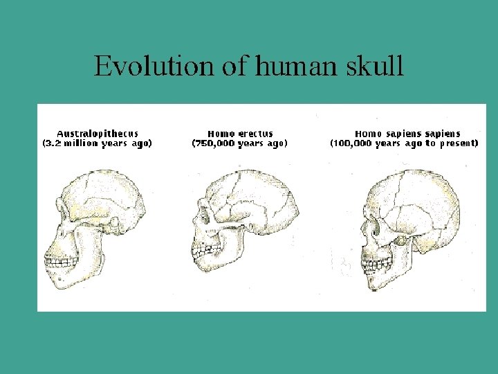 Vestigial Structures • Defined: Organs or structures which have lost most or all their original function • Vestigial Human Parts: – Gill slits = once used to breath oxygen in water – Yolk sac = once used to nourish developing embryo – Tailbone = once used for balance – Appendix = once used to digest plants – Wisdom teeth = once used to grind plant tissue • Evidence Conclusion : Indicates common ancestry