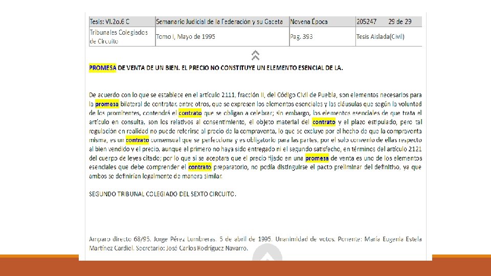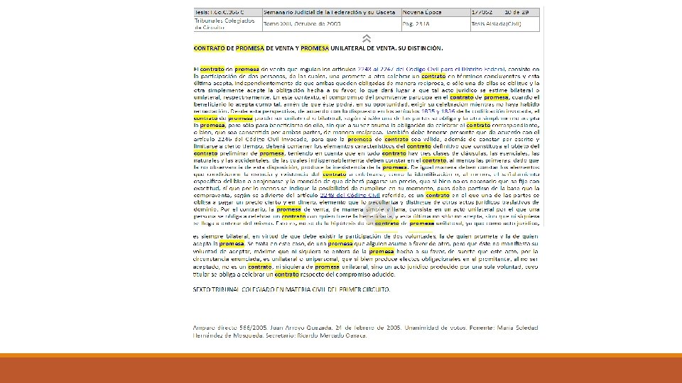 DIFERENCIA ENTRE EL CONTRATO DE PROMESA Y LA POLICITACIÓN v El policitante u oferente al lanzar su oferta se obliga a celebrar el contrato que promete. v. La oferta se dirige a una persona presente, ausente, determinada o indeterminada, proponiendo la celebración de un contrato. v. Es una declaración unilateral de voluntad. v. El contrato urge hasta que la oferta es aceptada. v. Se puede celebrar una policitación con el objeto de celebrar un contrato de promesa.