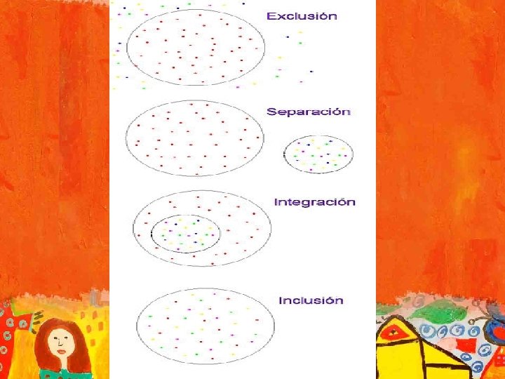• Por lo tanto, inclusión total significaría la apuesta por una escuela que acoge la diversidad general, sin exclusión alguna, ni por motivos relativos a la discriminación entre distintos tipos de necesidades, ni por motivos relativos a las posibilidades que ofrece la escuela.