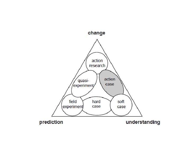 Action Research cycle • Diagnosing refers to the joint (researcher and practitioner) identification of situated problems and their underlying causes. – During this phase, researchers and practitioners jointly formulate a working hypothesis of the research phenomenon to be used in the subsequent phases of the action research cycle. • Action planning is the process of specifying the actions that can improve the problem situation. – Typically, this process includes specifications of IT-prototypes based on problems discovered in the diagnosing phase. • Intervention refers to the implementation of the intervention specified in the action planning phase.