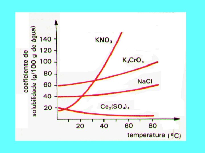 • O Coeficiente de Solubilidade ou de Saturação (CS) é a quantidade máxima de um soluto sólido, que pode ser dissolvida em certa quantidade de um solvente, em dada temperatura. • O CS é uma grandeza determinada experimentalmente e apresentada em tabelas. Por exemplo: • Na. Cl CS = 36 g/100 g de água, à 20 o. C • Ca. SO 4 CS = 0, 2 g/100 g de água, à 20 o. C • KNO 3 CS = 13, 3 g/100 g de água, à 20 o. C