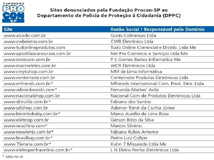 Empresas Confiáveis • Sites sem registros de muitas reclamações no PROCON • Mercado Livre • Americanas. Submarino, Ponto Frio, Saraiva, Netshoes* • Compras Coletivas *Presentes no Ranking das 20 maiores empresas online brasileiras. Fonte: Alexa. com