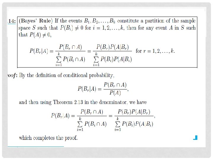 KAIDAH BAYES Jika kejadian – kejadian B 1, B 2, …, Bk merupakan sekatan dari ruang contoh S dengan P(Bi) 0 untuk I = 1, 2, …, k, maka untuk sembarang kejadian A yang bersifat P(A) 0,
