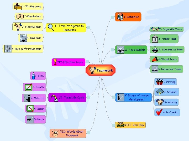 Words About Teamwork § There is no "I" in "Team“. § Many hands make light work. § No man island. § A team is a living organism. § Work with nature, do not put a senile team in the life support. § Teams are dealing with win-win relationship.