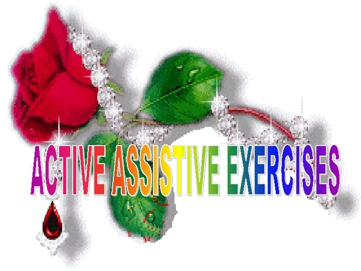 Definition: Active assistive exercises are exercises performed by the patient or with the assistance of an external force as therapist, cord & pulley, weight & pulley circuit etc…