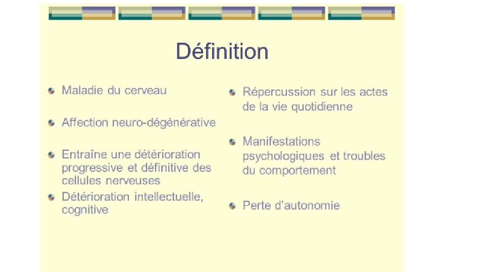 DEFINITION de la DEMENCE La maladie dAlzheimer est
