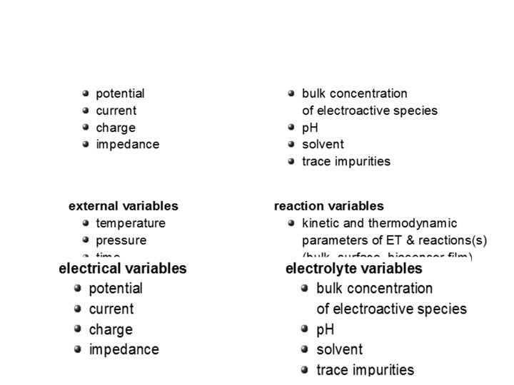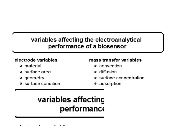 A successful biosensor must possess at least some of the following beneficial features: • The biocatalyst must be highly specific for the purpose of the analyses, be stable under normal storage conditions and, except in the case of colorimetric enzyme strips • The reaction should be as independent of such physical parameters as stirring, p. H and temperature as is manageable. This would allow the analysis of samples with minimal pre-treatment. • The response should be accurate, precise, reproducible and linear over the useful analytical range, without dilution or concentration. It should also be free from electrical noise.