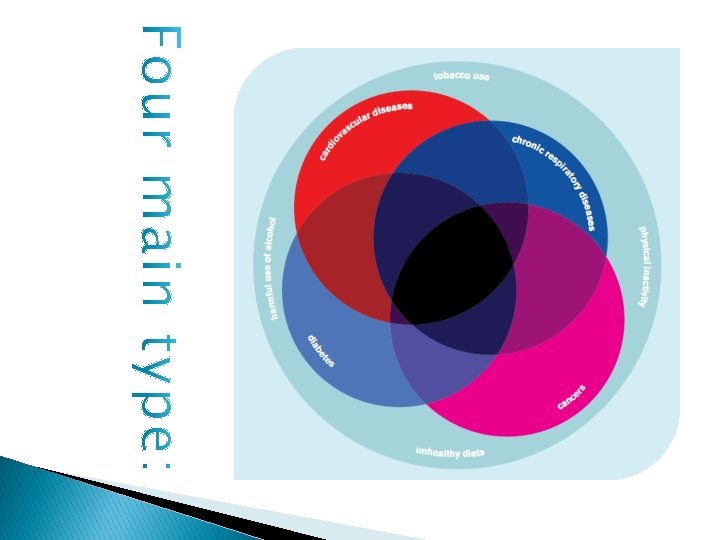 Global status report on morality rate to NCDS � - - --Today, non communicable diseases (NCDs), are responsible for more than 75% of deaths worldwide, (NCDs) kill 38 million people each year(WHO). --Almost three quarters of NCD deaths - 28 million - occur in low- and middle-income countries. -- Sixteen million NCD deaths occur before the age of 70; 82% of these "premature”. -- Cardiovascular diseases account for most NCD deaths, or 17. 5 million people annually, followed by cancers (8. 2 million), respiratory diseases (4 million), and diabetes (1. 5 million). -- These 4 groups of diseases account for 82% of all NCD deaths
