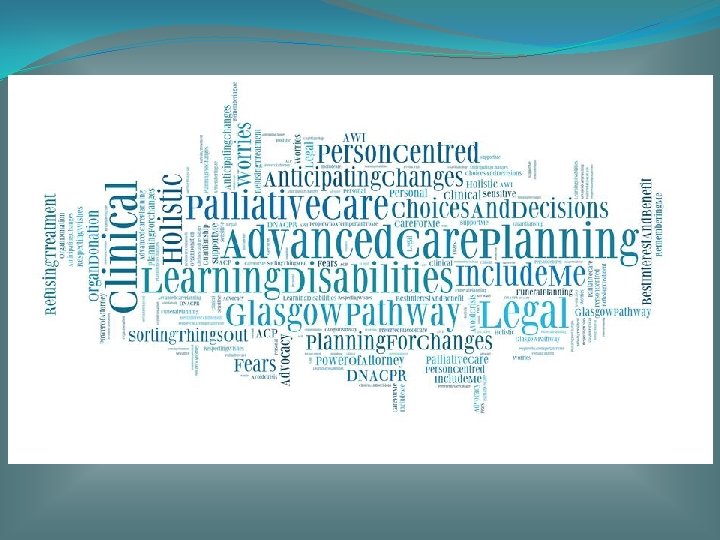 Palliative Care in Learning Disability All people , regardless of their condition and where they are being cared for, have the right to good end of life care and control over their care – that applies as much to people with learning disabilities as to anyone else. To achieve that, communication and partnership working between the individual , the family and all those involved in their care even more important in end of life care situations” National End of Life Care Programme 16/12/2021