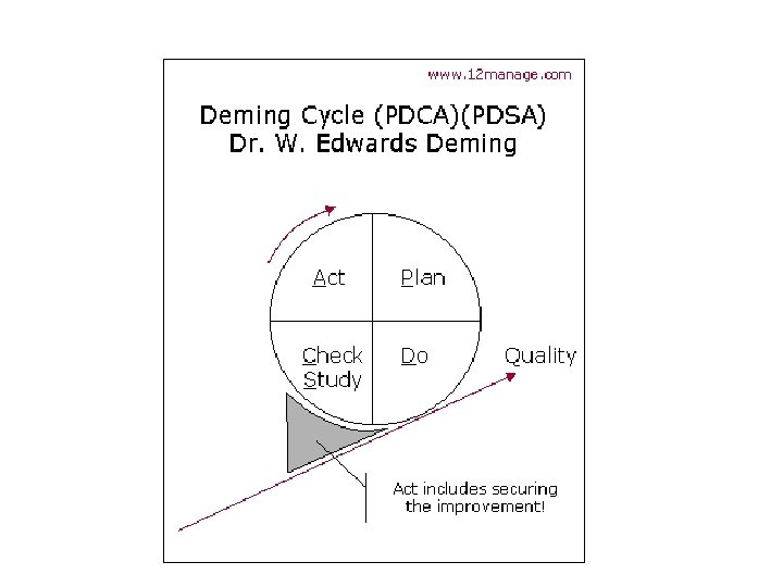 Modern History of Quality Management • Frederick W. Taylor wrote Principles of Scientific Management in 1911. • Walter A. Shewhart used statistics in quality control and inspection, and showed that productivity improves when variation is reduced (1924); wrote Economic Control of Manufactured Product in 1931. • W. Edwards Deming and Joseph M. Juran, students of Shewhart, went to Japan in 1950; began transformation from “shoddy” to “world class” goods. • In 1960, Dr. K. Ishikawa formalized “quality circles” - the use of small groups to eliminate variation and improve processes. • In the late ‘ 70’s and early ‘ 80’s: – Deming returned from Japan to write Out of the Crisis, and began his famous 4 -day seminars in the United States – Phil Crosby wrote Quality is Free – NBC ran “If Japan can do it, why can’t we? ” – Motorola began 6 Sigma