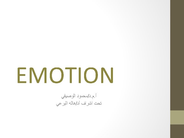 Theoretical Explanation of Emotion The James-Lange Theory of Bodily Reactions: • “Feelings” are merely mental responses to the changes that have occurred in nervous system, muscles and glands. • According to this theory, we are afraid because we run; we do not run because we are afraid.