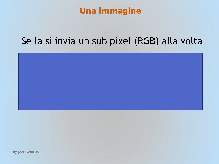 Una immagine Se la si invia un sub pixel (RGB) alla volta 256 stati (le intensità di un colore) 8 bit infatti 28 = 256 By prof. Camuso