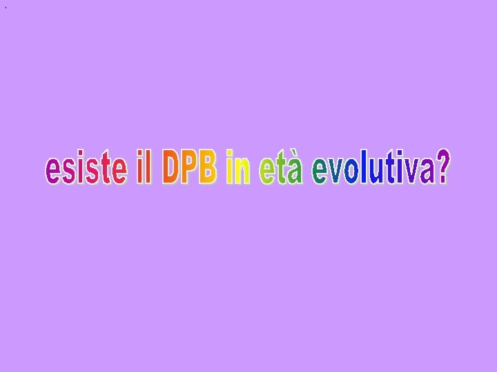 Caratteristiche del DBP nel bambino vs psicosi e nevrosi (Verhulst 1984) n Angosce di annichilimento – processi di pensiero primario – livelli di funzionamento dell’Io mutevoli – disturbo dell’identità – meccanismi di difesa primitivi – stati micropsicotici – funzionamento superegoico inefficace – stranezze del comportamento motorio - marcata attività di fantasia – discrepanze tra interessi e talenti e funzionamento effettivo – fluttuazioni tra ritiro e richiestività, adesività, legami imprevedibili