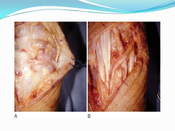 �Any tendons ruptured at the level of the wrist can be repaired at the time of synovectomy. � Options include side-to-side anastomosis, free tendon graft, and tendon transfers to bridge a defect in a tendon. � If synovitis involves the wrist and the metacarpophalangeal joints, synovectomy often can be done at both levels through carefully planned incisions during the same operation, usually on one limb at a time