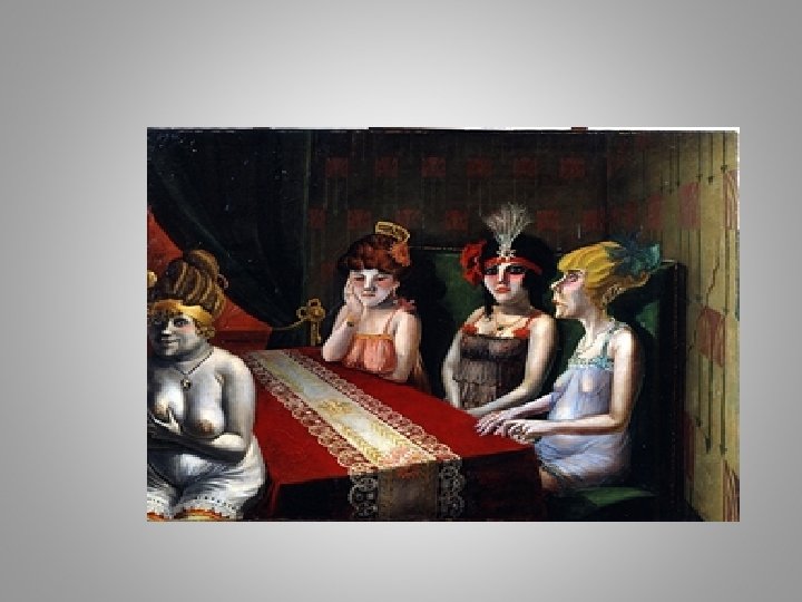 During the Weimar Era, the interwar period (between WW 1 and WW 2) between 1919 and 1933, Germany filled with the living half-dead. Many soldiers returned from war scarred, crippled and missing limbs. Many men were irreparable, and their widows were left to fend for themselves and their children. For some war widows, prostitution--and the emotional numbness that made that profession bearable--was the only option.