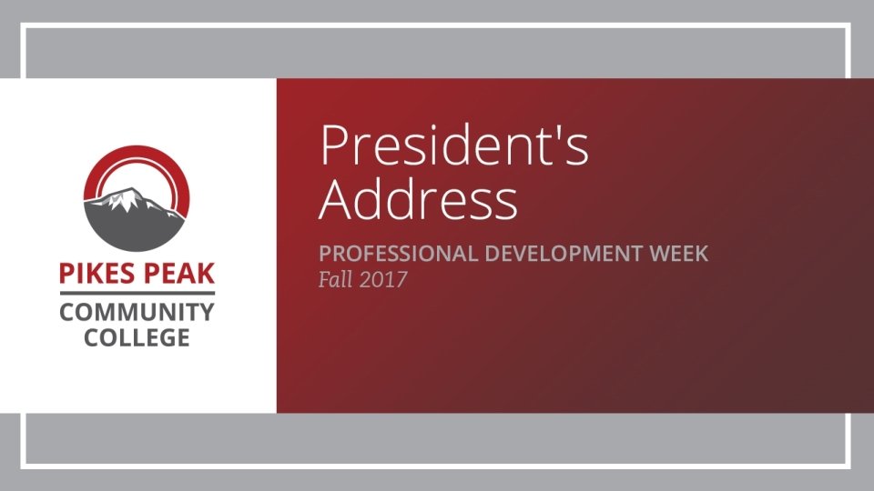 Accreditation PPCC will be hosting two site visits in fall 2017 (dates TBD) Multi-location Visit § § Three locations: Aspen Valley Ranch, Downtown campus, and Early College High School. Purpose: confirm the continuing Mid-cycle Review § Scheduled July 29, 2019 (virtual visit) § Will include a monitoring report on Program Review and Assessment (in both instructional effective oversight of HLCapproved additional locations and support services) § Rewrite of our 2014 self-study report started over the summer (Criteria 1, 2 and 5)