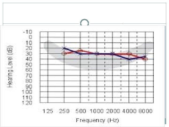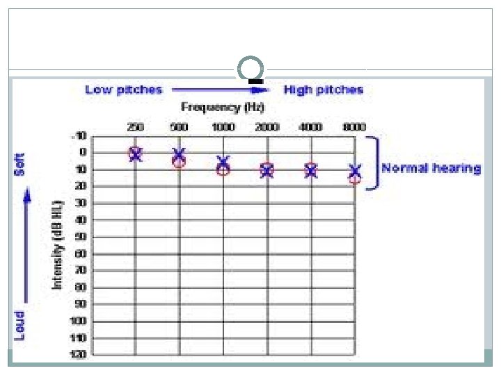 Normal Hearing Loss �Students can detect all speech sounds even at a soft conversation level. �The student’s hearing would be plotted in the -10 to +15 d. B range on an audiogram