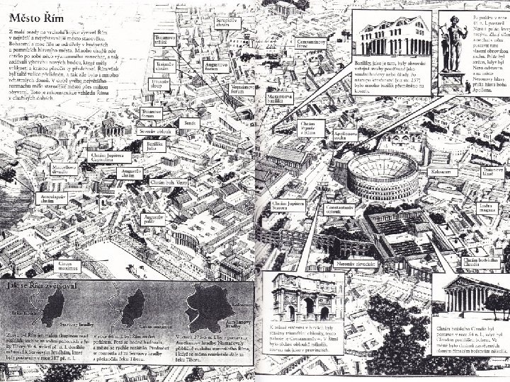 Rekonstrukce Římské metropole Římané mohou být považováni za první opravdové stavitele měst podle ideálního modelu. Města byla přesně naplánována, měla organizované čtvrti s nádhernými vilami pro majetné občany i domy pro chudinu, některé z nich dosahovaly až pěti pater. Středem římského města bylo fórum, centrum společenského, náboženského a kulturního života, zdobené sochami a vítěznými oblouky, oslavujícími hrdinské činy císařů.
